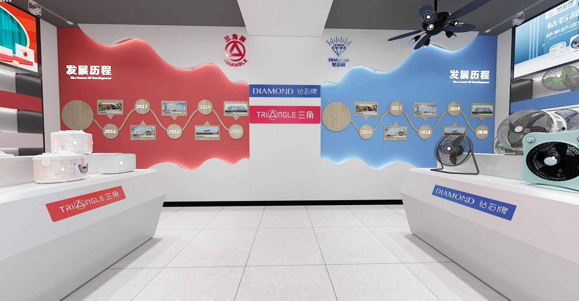 为了做足做好提级后首届广交会的参展工作,在产品展示方面,三角公司通过详尽的产品描述及高清的图片展示,结合VR全景展厅与现场带货直播形式,“三管齐下”全方位呈现展品,塑造品牌形象。VR展厅将三角牌厨房小家电与钻石牌环境通风电器组合,搭配不同功能性的展品陈列,在当前疫情常态化的大环境下,突破时空限制,多角度、数字化模拟现场环境,将注重体验感的家电产品栩栩如生地呈现在客商面前。